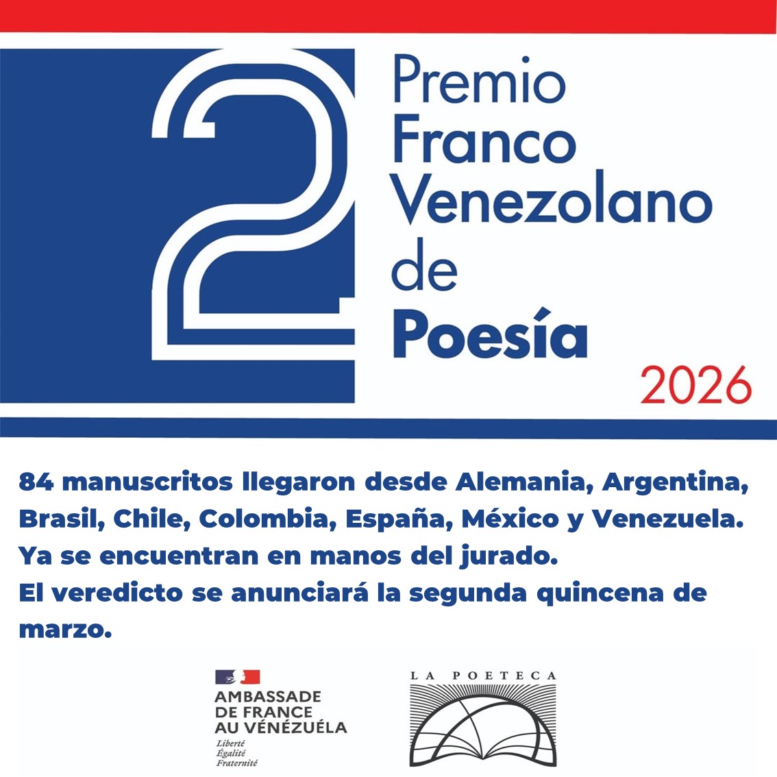 El pasado 1 de enero cerró la convocatoria para el 2º Premio Franco Venezolano de Poesía. En La Poeteca extendemos un reconocimiento a todos los participantes por su entusiasmo y dedicación.